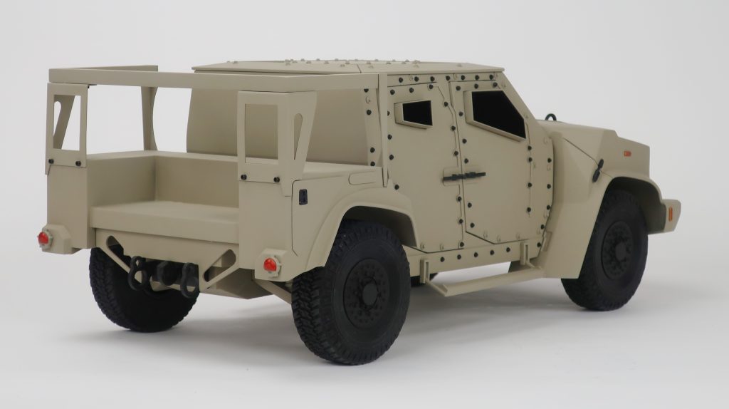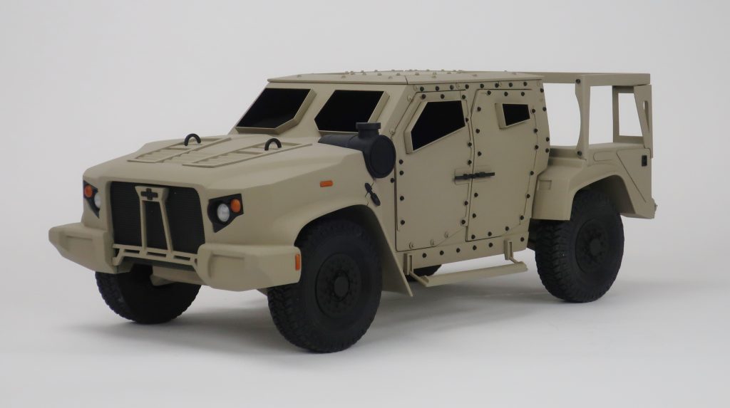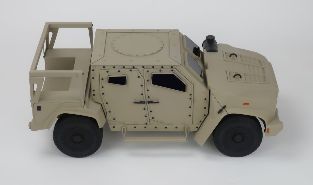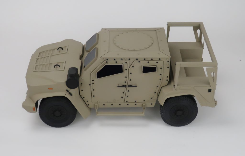 This scale model of a JLTV is 20″ long and was built to showcase our customer’s product.