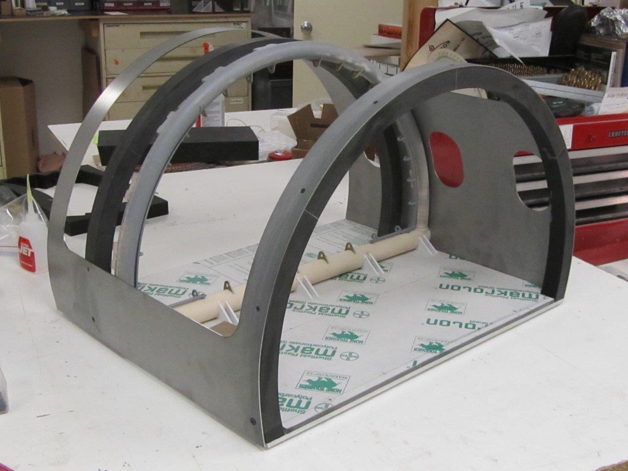 Laser cut rolled steel was used for the body of the airplane fuselage model. It also included 3D printed parts, machined Ren board for the curved ribbing, and working doors made of brass.