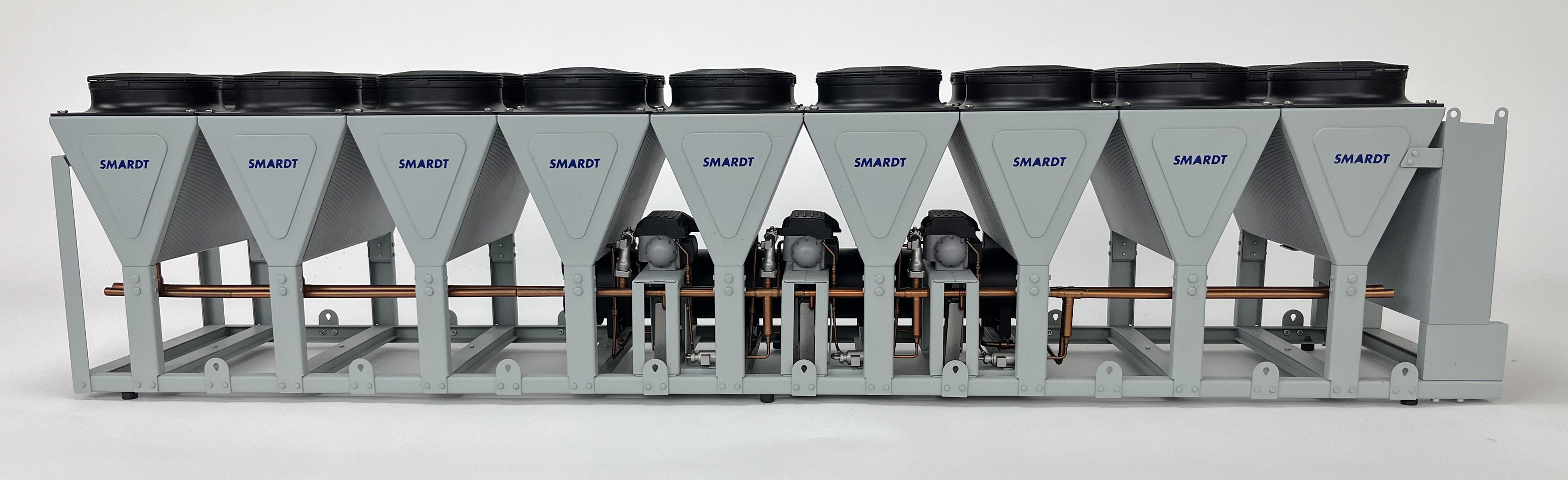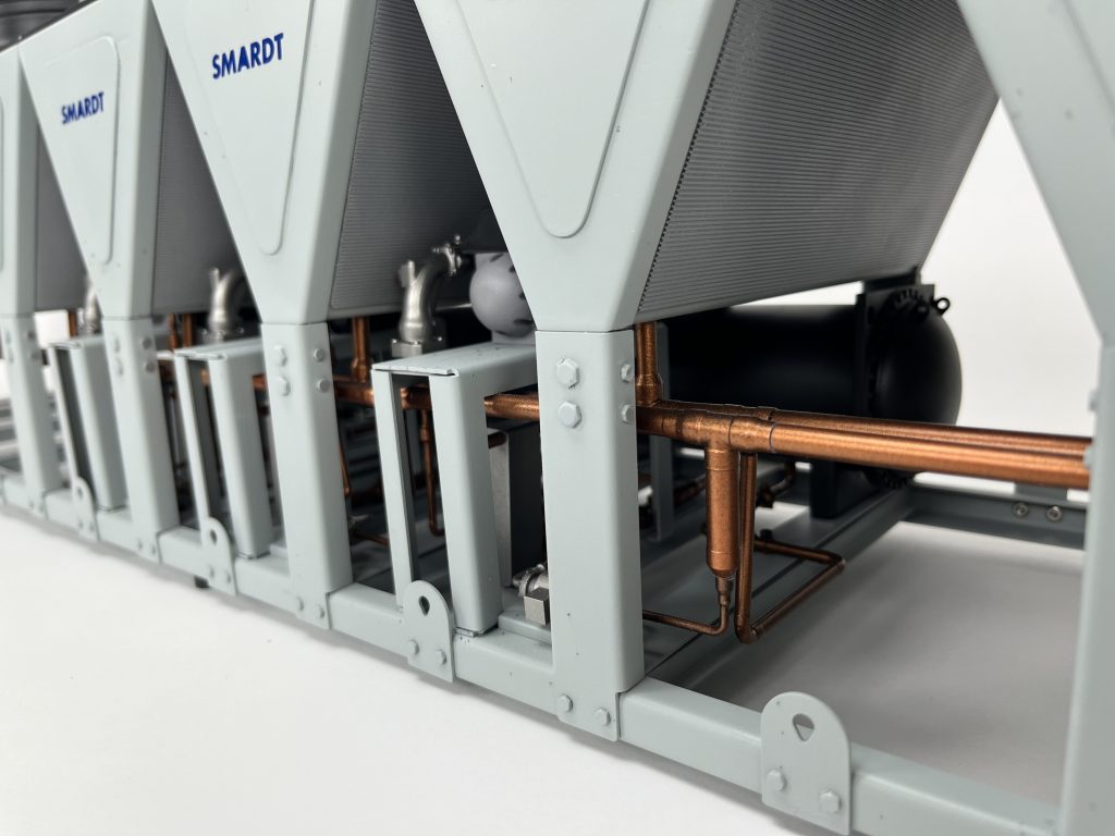 This chiller models measures approximately 36″ long and is made out of a variety of materials, including the entire frame and skid made in sheet-metal. KiwiMill blends various manufacturing disciplines to produce a model that is strong enough to be shipped to trade shows and true to the customer’s product.