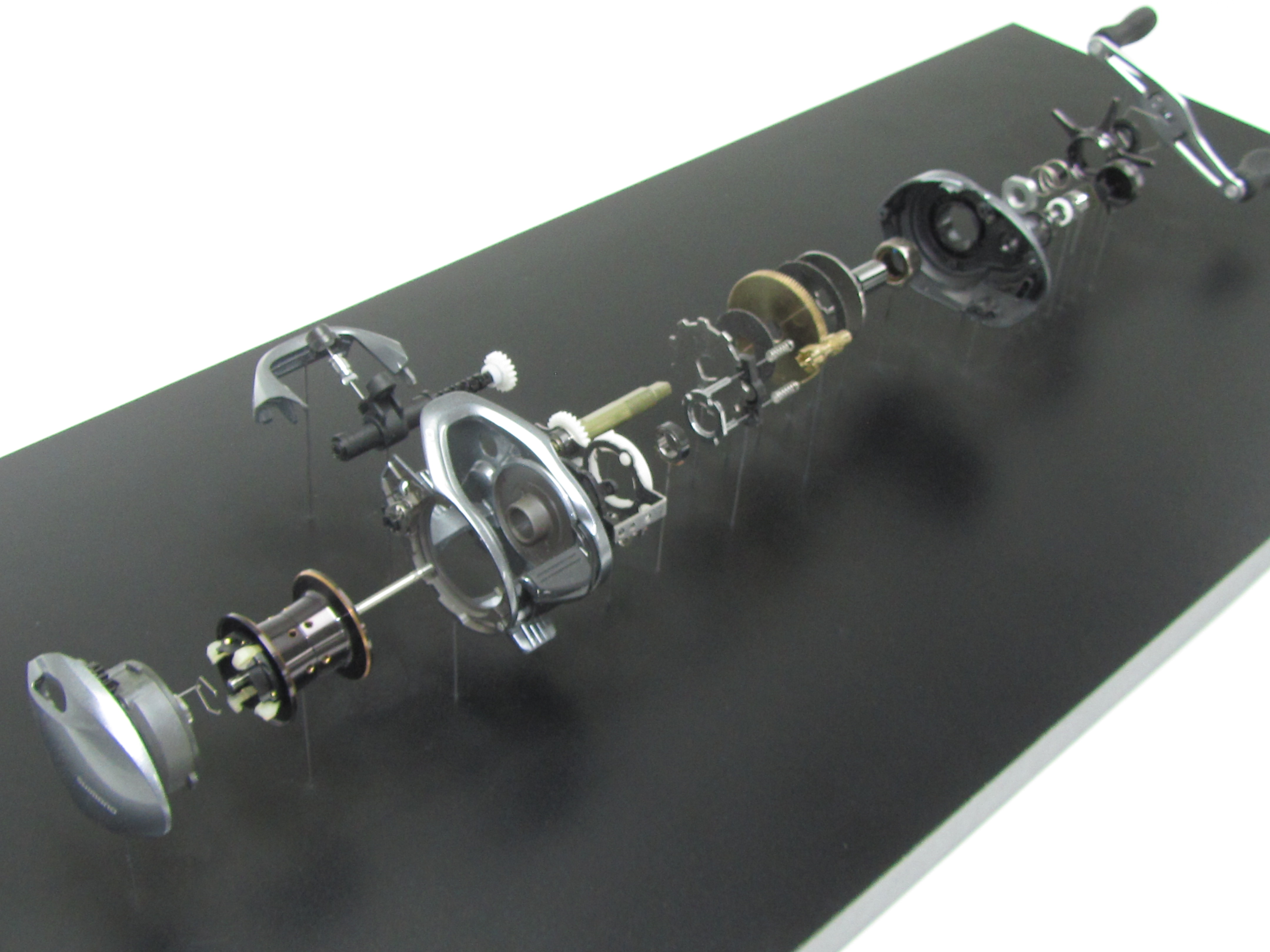 The final layout design of the Fishing Reel Display Model was approved by our client and carefully packed in a bed of rice to preserve the delicately suspended parts.