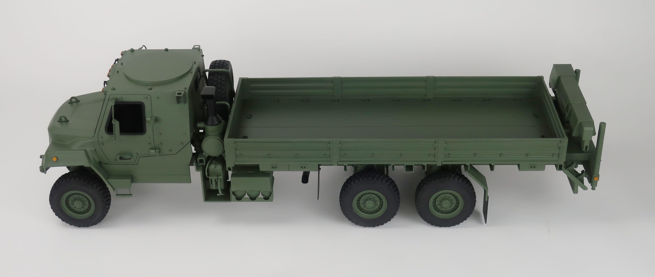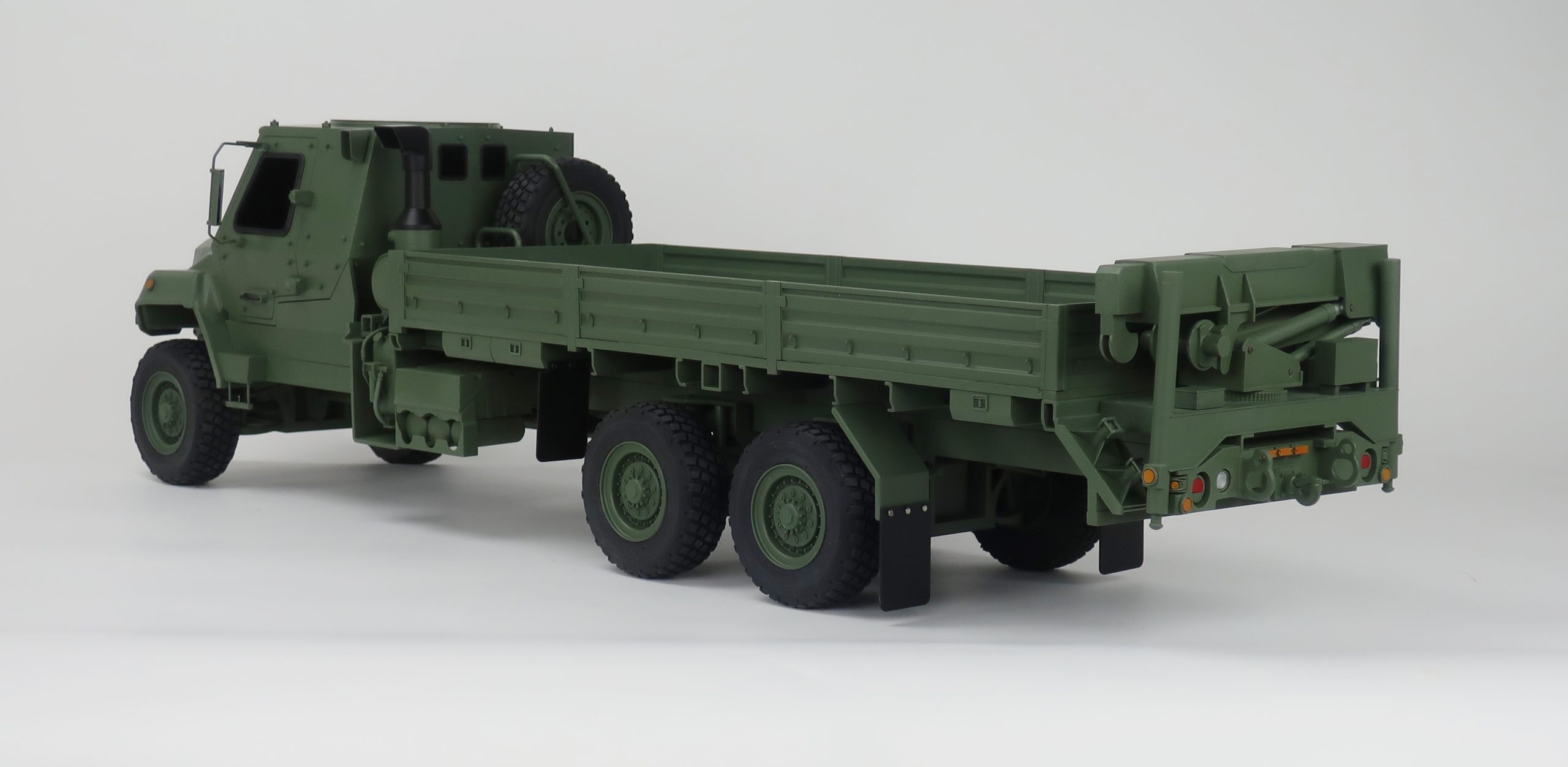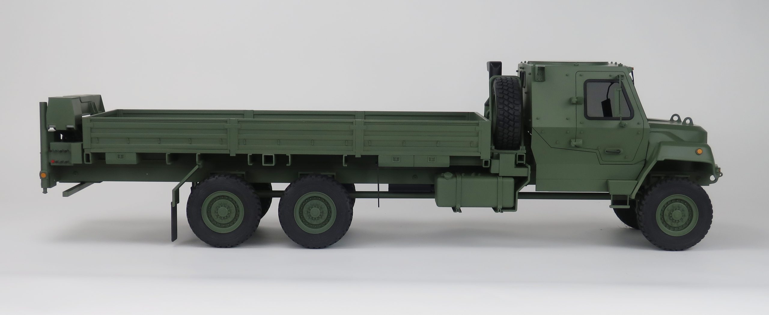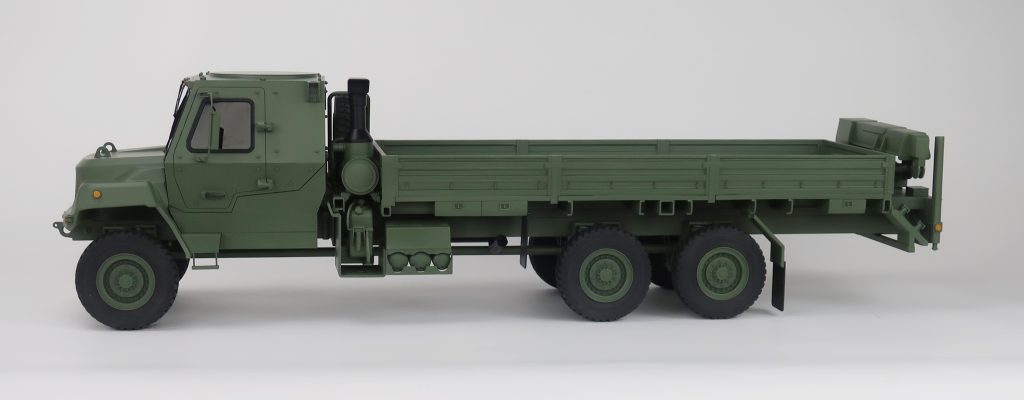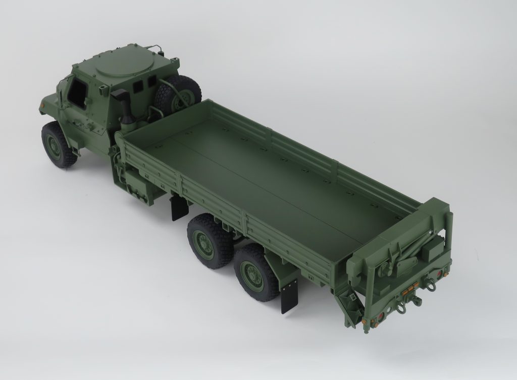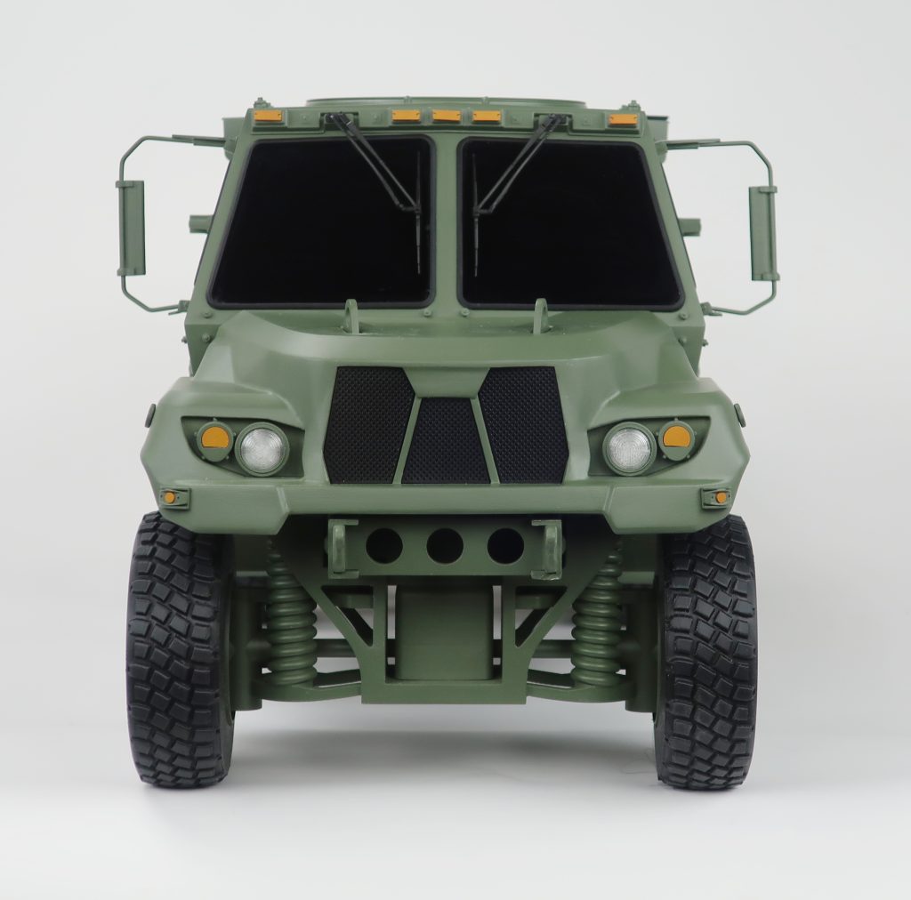 This 1/12‑scale FMTV A2 model features an extended 20‑foot bed and a fully detailed crane assembly, built to accurately represent the vehicle’s capabilities for display, demonstration, and trade show environments. KiwiMill engineered this model to highlight the rugged structure, functional layout, and distinctive proportions of the FMTV‑A2 platform, ensuring a visually compelling and durable presentation piece.