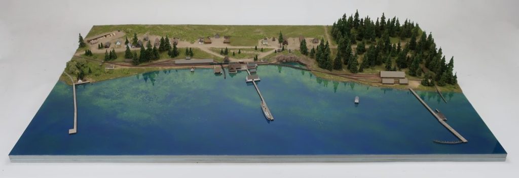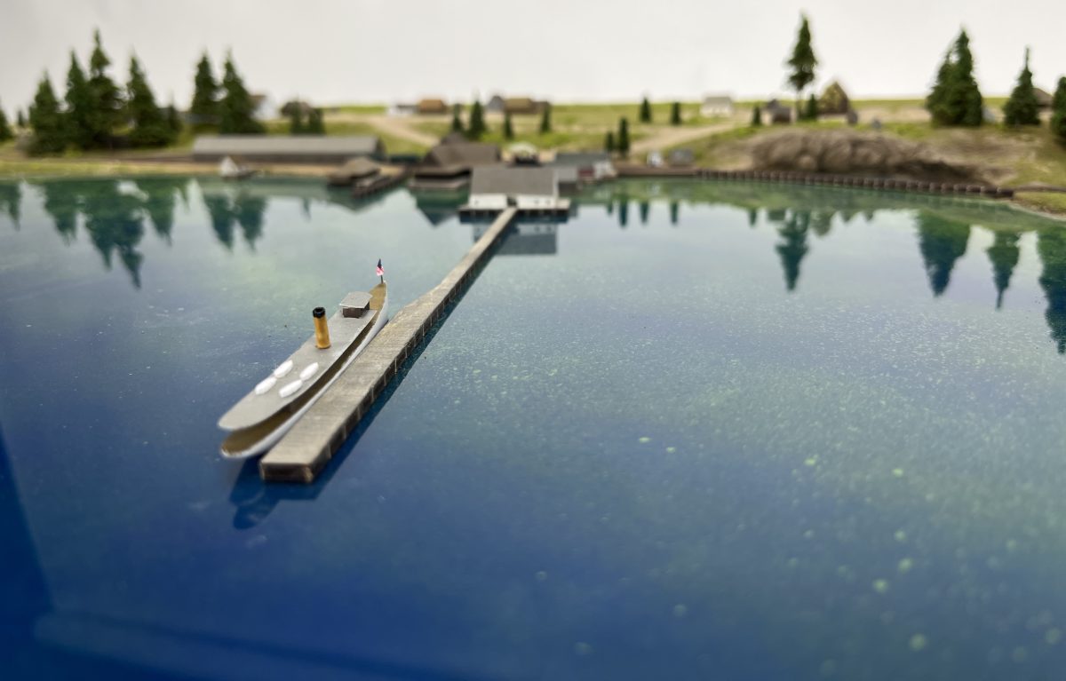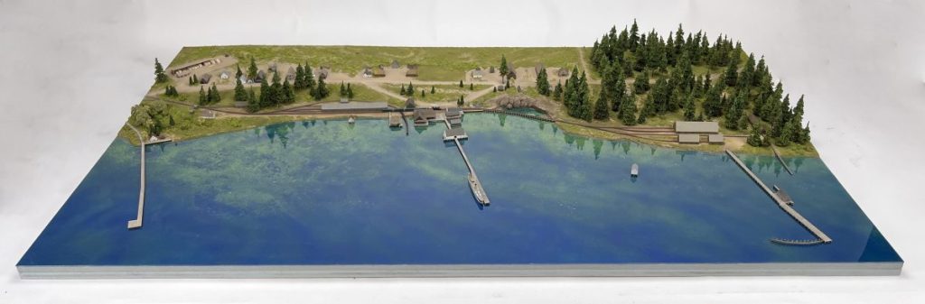 This model is approximately 2ft x 3ft and includes a scene from 1920s Lake Tahoe, California when this beautiful mountain resort first became a destination resort. Look at the last picture in this series to get an idea of the miniature scale and how much detail it was possible to include in this amazing model.